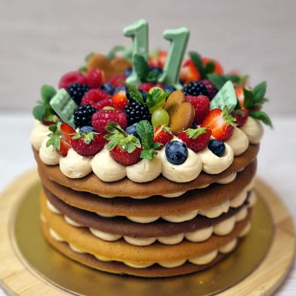 Medus torte ar brūklenēm, sāļo karameli un medū grauzdētiem zemesriekstiem