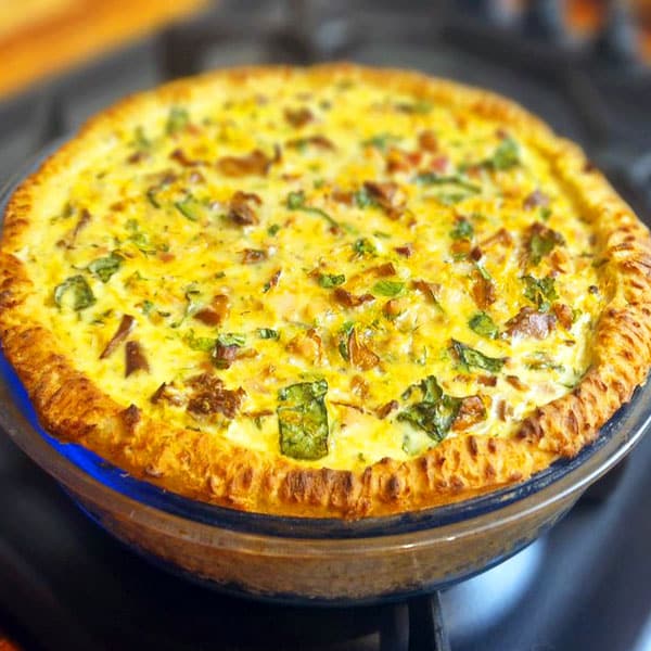 Kartupeļu tarte ar gailenēm un kūpinātu vistas krūtiņu