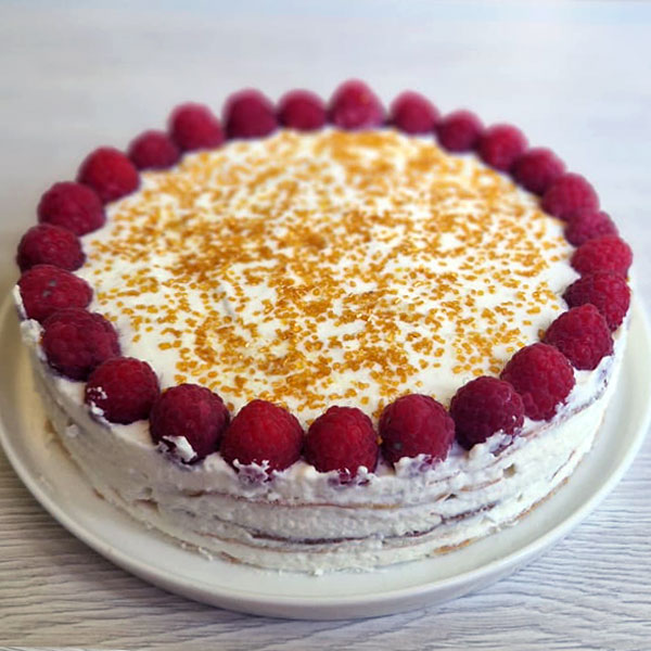 Lej masu cepamajā formā un pa virsu mīklā iespiež ogas.